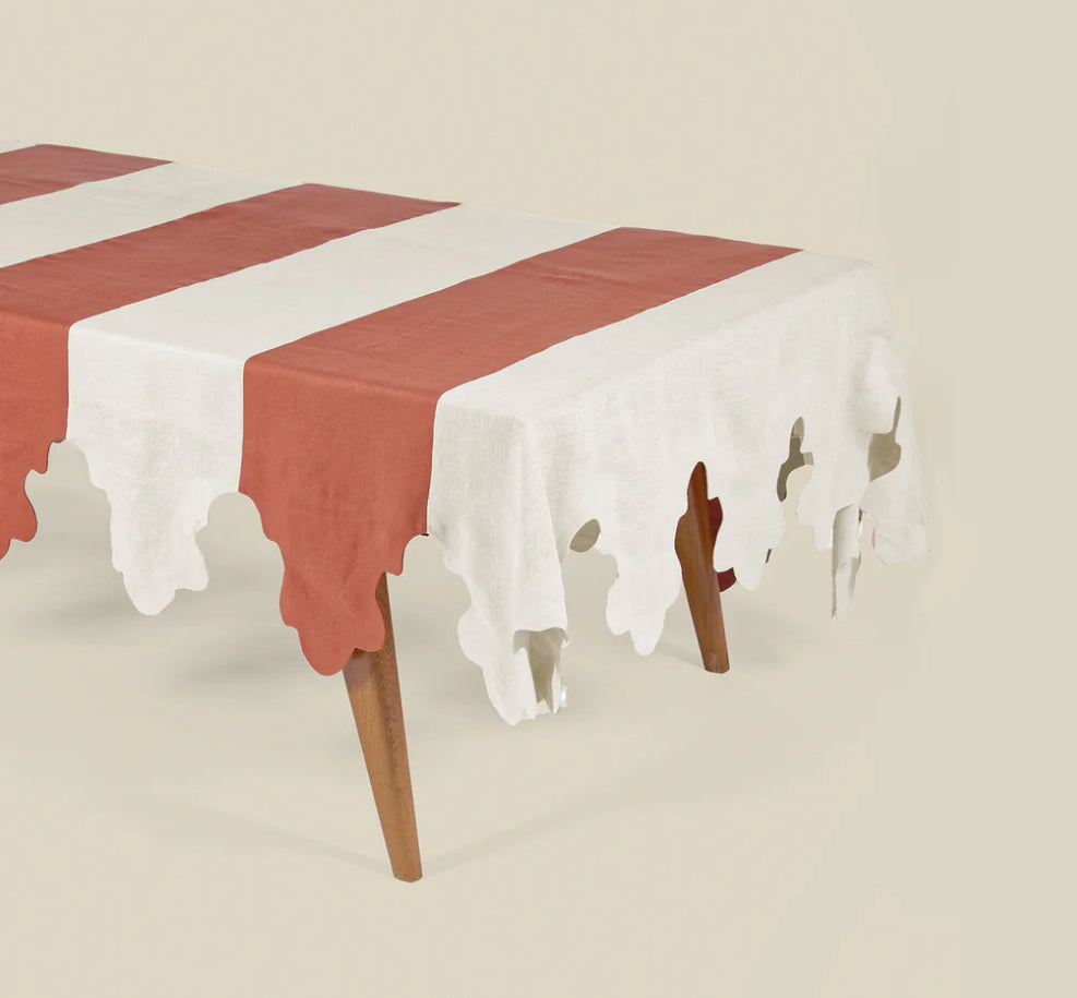 A statement addition to your dining space, the Tie Me Up Tablecloth is handmade with 100% linen and traced with bold red applique ribbons. Chf 499.-